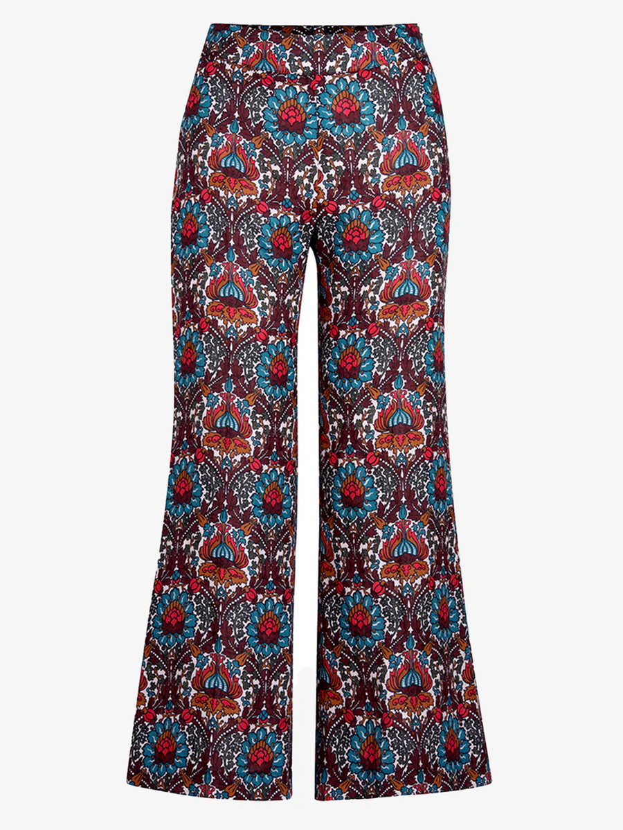 Amy Says... Mid-rise, this pant silhouette is fitted through the waist and hips with a wide-leg and cropped length. Pop this Liberty print with a crisp button down in white or wear with its coordinating blazer for a head-to-toe printed look.