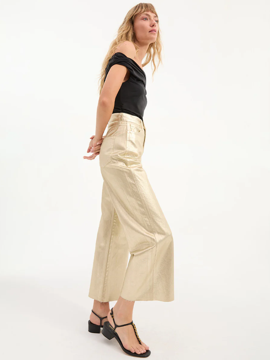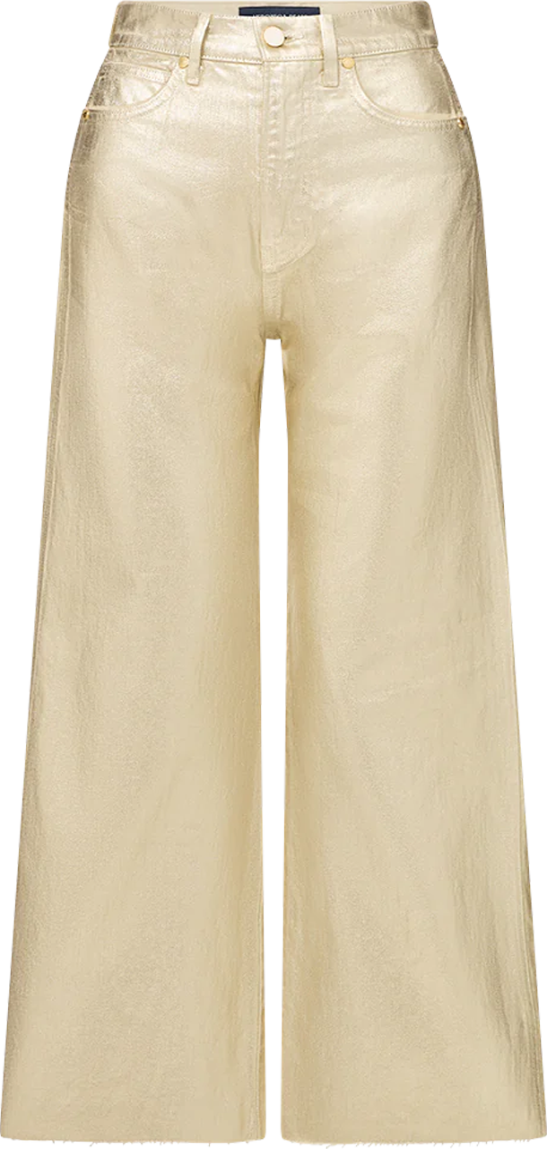 Amy Says... The Taylor you know and love—now in high-shine gold. Made from 100% non-stretch cotton, the high-rise, wide-leg jean is coated in metallic foil for chic effect. The cropped silhouette suits sneakers and heels alike, making these metallic gold jeans great for elevating the everyday with a simple tee and—when paired with a going-out top—a standout at night.