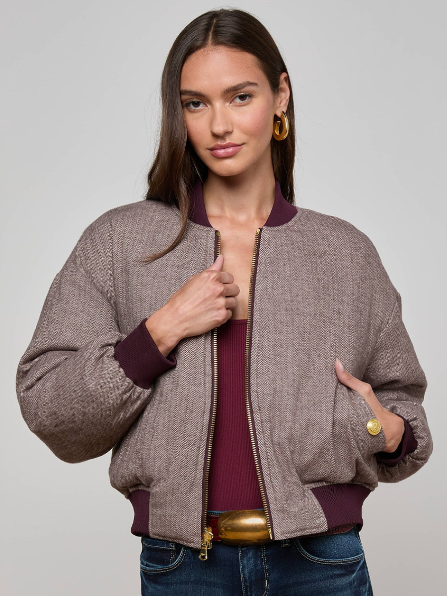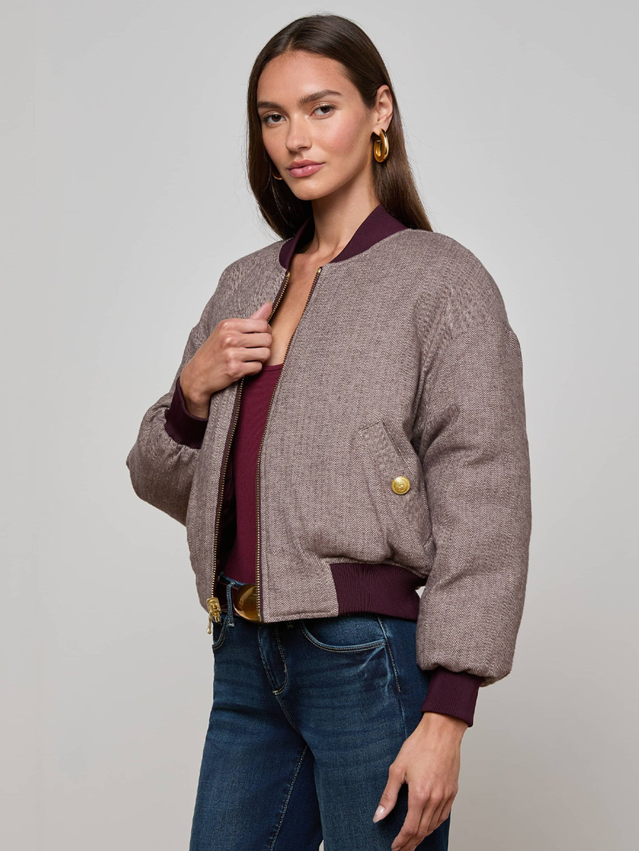 Amy Says... Introducing the Violeta, a reversible bomber-style puffer that doubles your styling options. One side features rich wine satin with diamond quilting, while the reverse shows off a sophisticated herringbone weave. Shop Jackets & Coats.