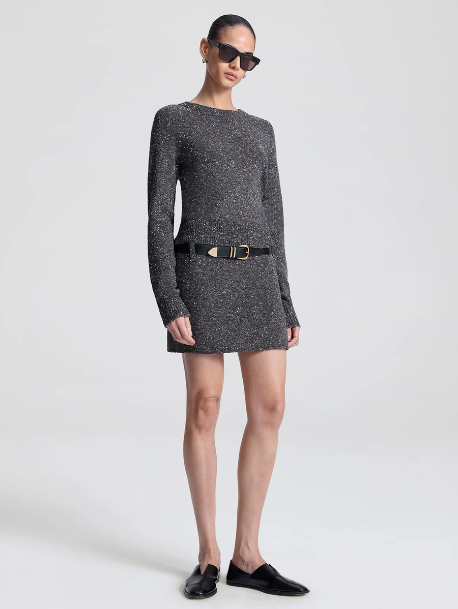Amy Says... Knitted from a blend of Italian yarns into a textured bouclé tweed, this sweater is designed with a crewneck, fitted silhouette, and ribbed hem and cuffs. Shop Sweaters.