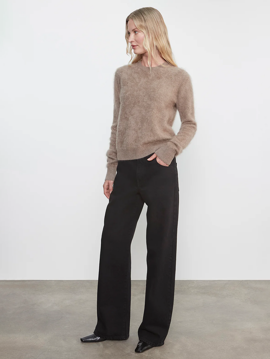 Longhair Cashmere Easy Crew in Walnut