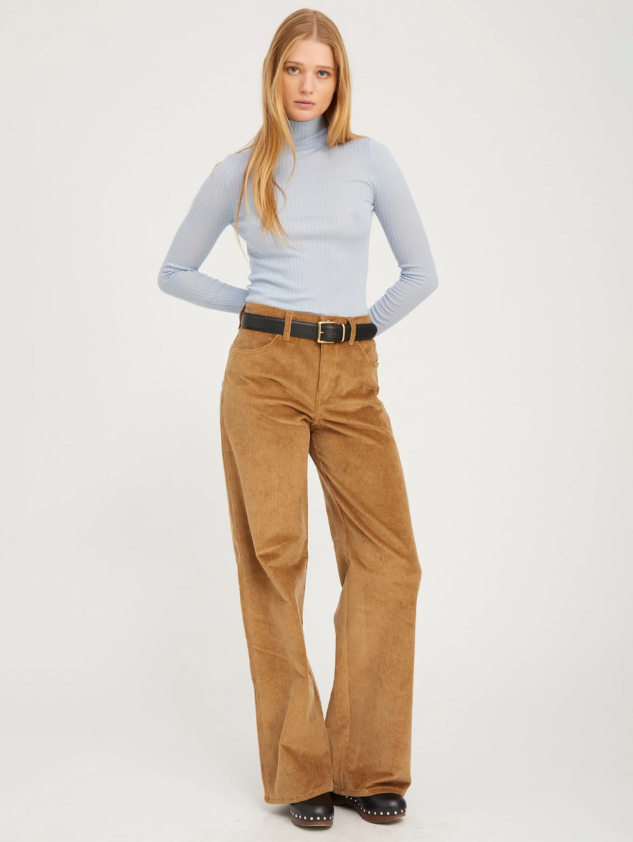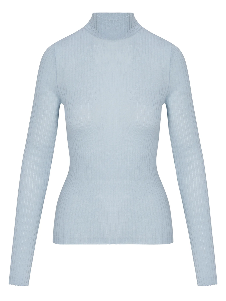 Amy Says... Finely knitted in our high quality, ultrasoft Mongolian Cashmere, this lightweight long sleeve essential will easily become a wardrobe favorite. Elegantly designed with playful lettuce hemlines, this vertical ribbed mock-neck has just the right amount of stretch, and is slightly fitted for a slimming look. With a wide range of styling options, this top tucks seamlessly into all of your high waisted bottoms making it the perfect layering piece to pair with your favorite SPRWMN jeans or trousers. Shop Blouses.