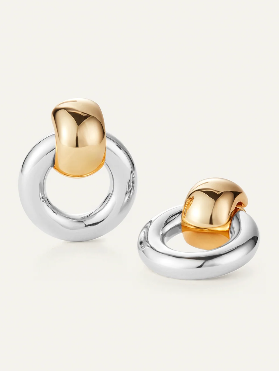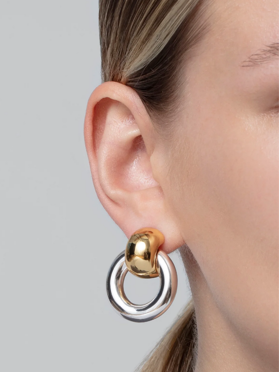 Amy Says... A new take on a classic fave, these buoyant, voluminous earrings were reimagined in a mixed metal design. These high-shine hoops swing from a gleaming huggie earring, creating beautiful movement as you wear them. Finished in high-polish silver and 14k gold. Shop Jewelry.