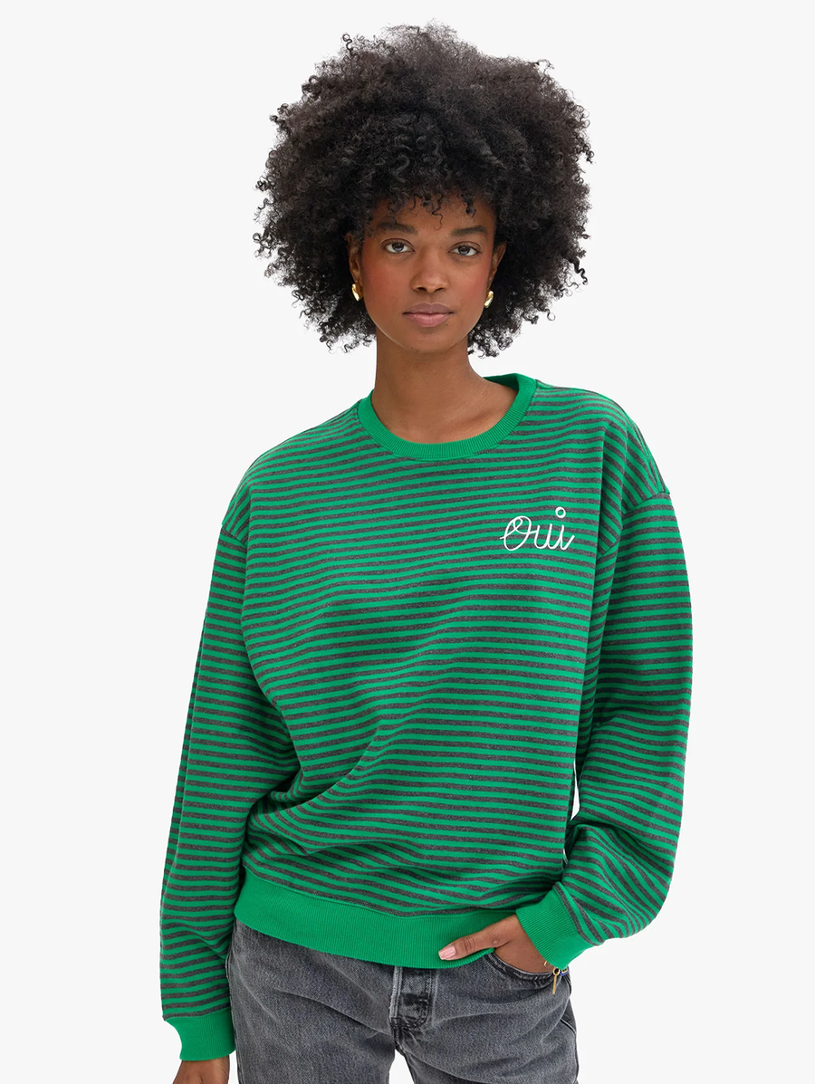 Oversized Striped Oui Sweatshirt in Green/Charcoal Stripes