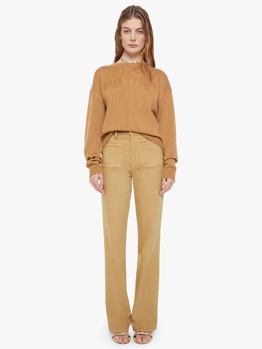 Amy Says... A crewneck sweater with drop shoulders, ribbed hems and an oversized fit. The Logo Jumper is made from 100% cashmere in camel with MOTHER's name across the chest. This creweck layer pairs well with your favorite Mother denim. Shop Sweaters.