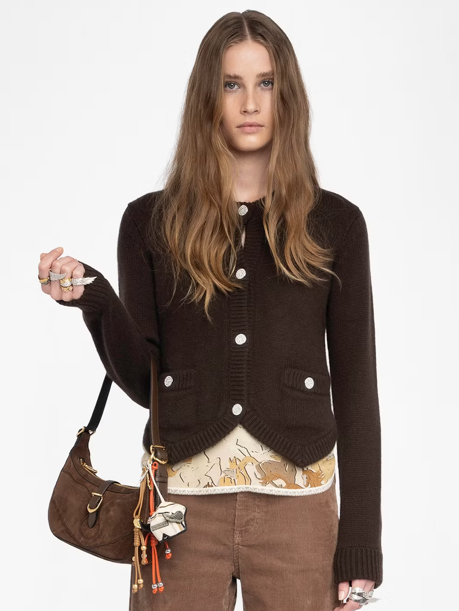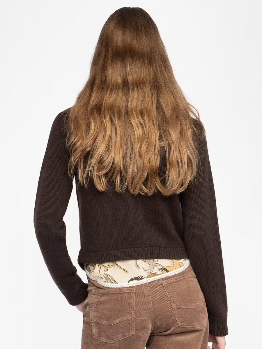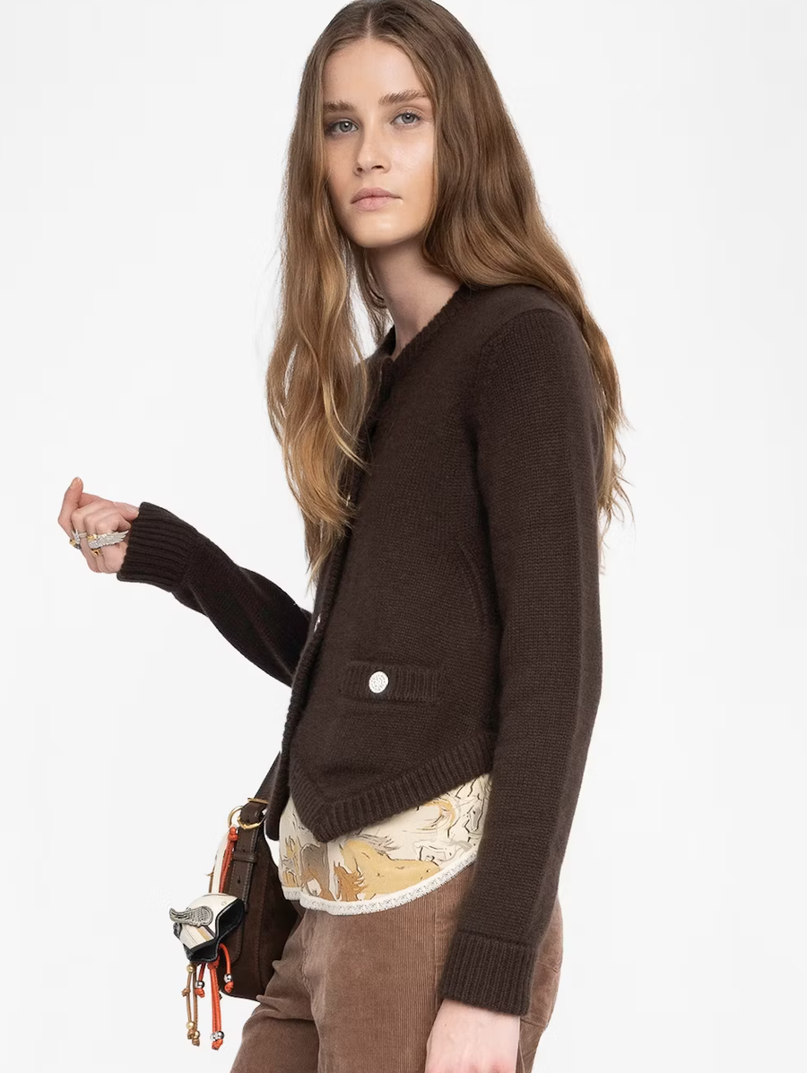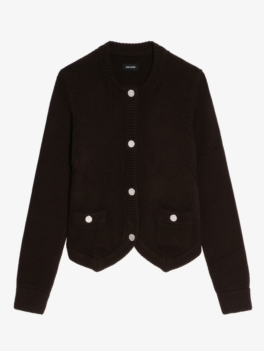 Amy Says... The Westia round neck buttoned cashmere cardigan is slim-fitting with long sleeves. This dark chocolate sweater is finished with a round neckline and diamante acccent buttons. Endlessly versatile, style it with your favorite denim for an everyday look, or over a maxi skirt for a more feminine feel.. Shop Sweaters.