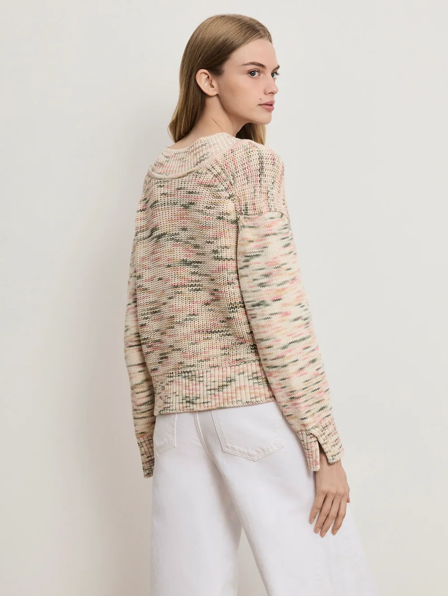 Amy Says... The quintessential slouchy sweater. Spun from premium Italian cotton—space-dyed for a speckled effect—the Anola pullover features a subtle high-low hem and a v-neckline. A wide, ribbed trim at the hem, cuffs, and neck completes the look. Style this knit sweater with denim for everyday ease, or layer over a slip skirt for something more elevated. Shop Sweaters.