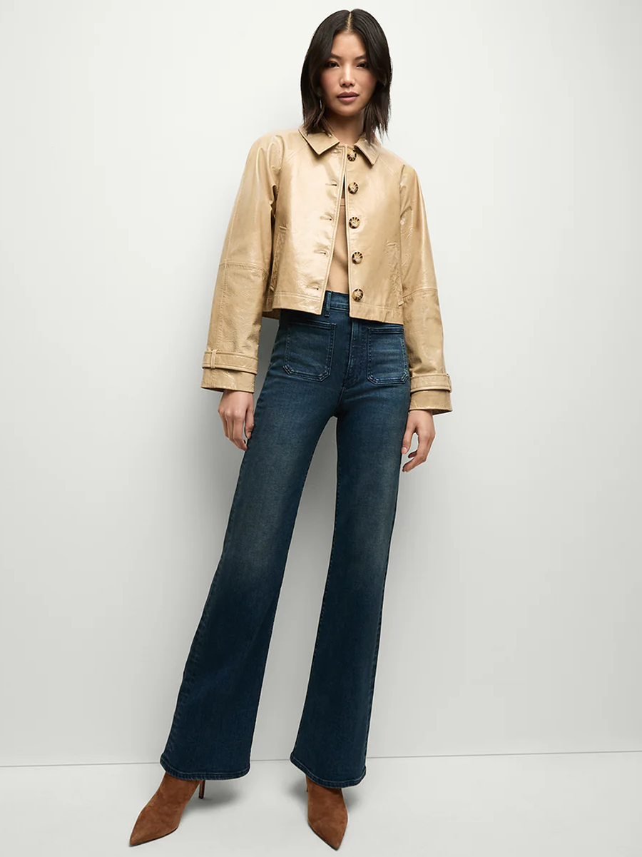 Amy Says... Expertly tailored, the Kian is crafted from luxurious lambskin leather that's coated for a slick effect. Equal parts polish and edge, the jacket features a boxy silhouette with raglan sleeves for a relaxed fit. Buckled sleeves and diagonal slip pockets complete the look. Pair this cropped leather jacket with the coordinating Gershwin Tweed Short for a chic matching moment.