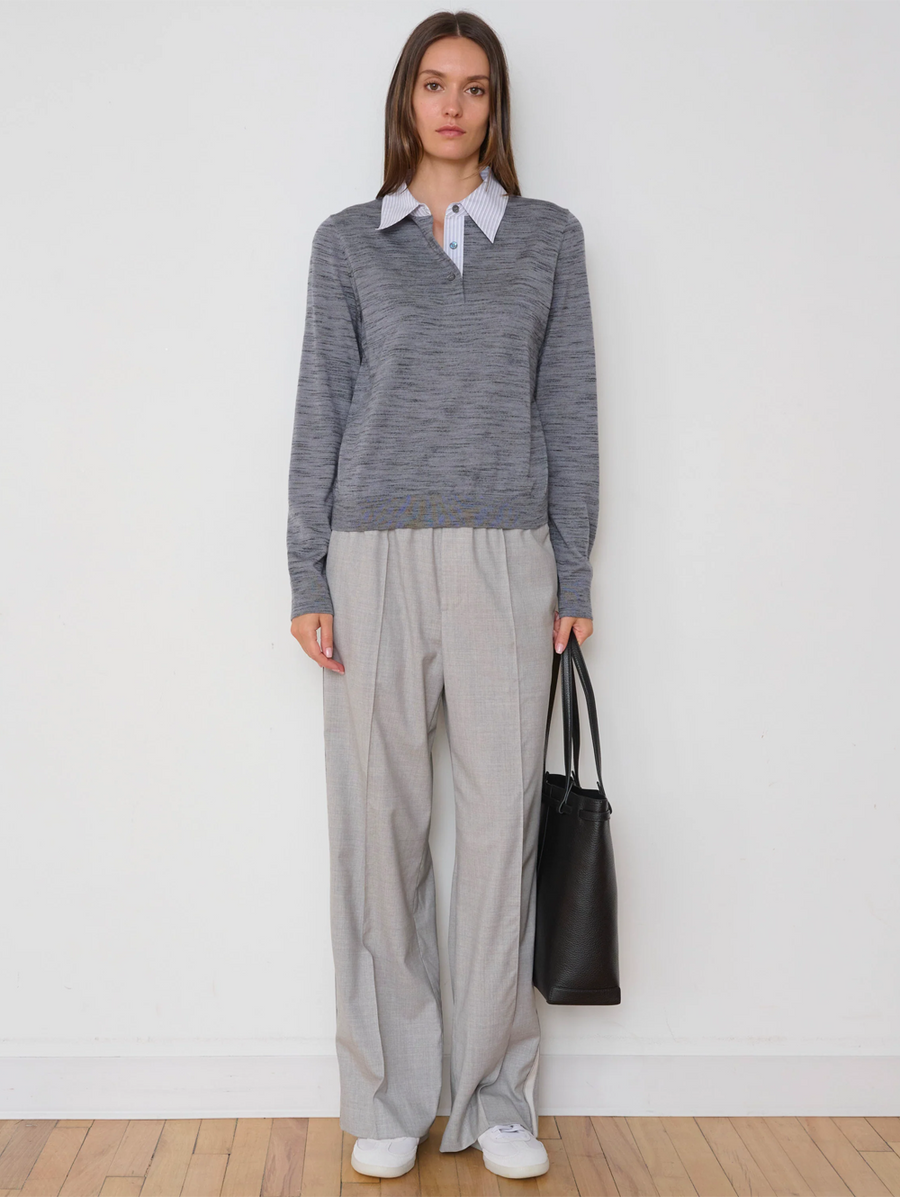Amy Says... A study in refined contradiction, the Charlie Polo is a thoughtful reinterpretation of a classic staple. It seamlessly blends the luxurious drape of a fine lightweight merino wool with the sharp, graphic contrast of a crisp poplin collar, creating a sophisticated look that is both timeless and unexpectedly modern. Shop Tops.