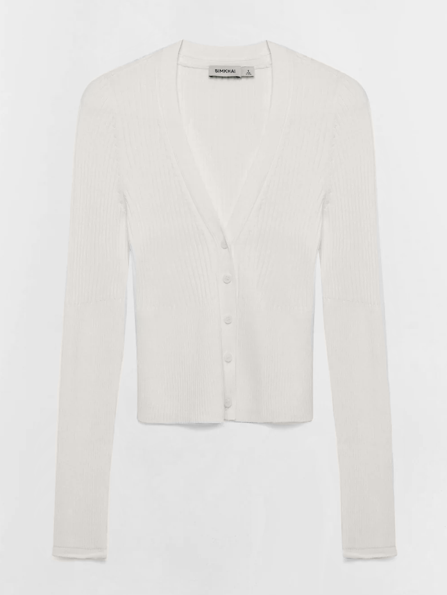 Amy Says... The Ailany Rib Knit Cardigan in Ivory. Crafted in compact rib knit, this fitted shrunken cardigan features a streamlined silhouette with button-front detailing. Shop Sweaters.