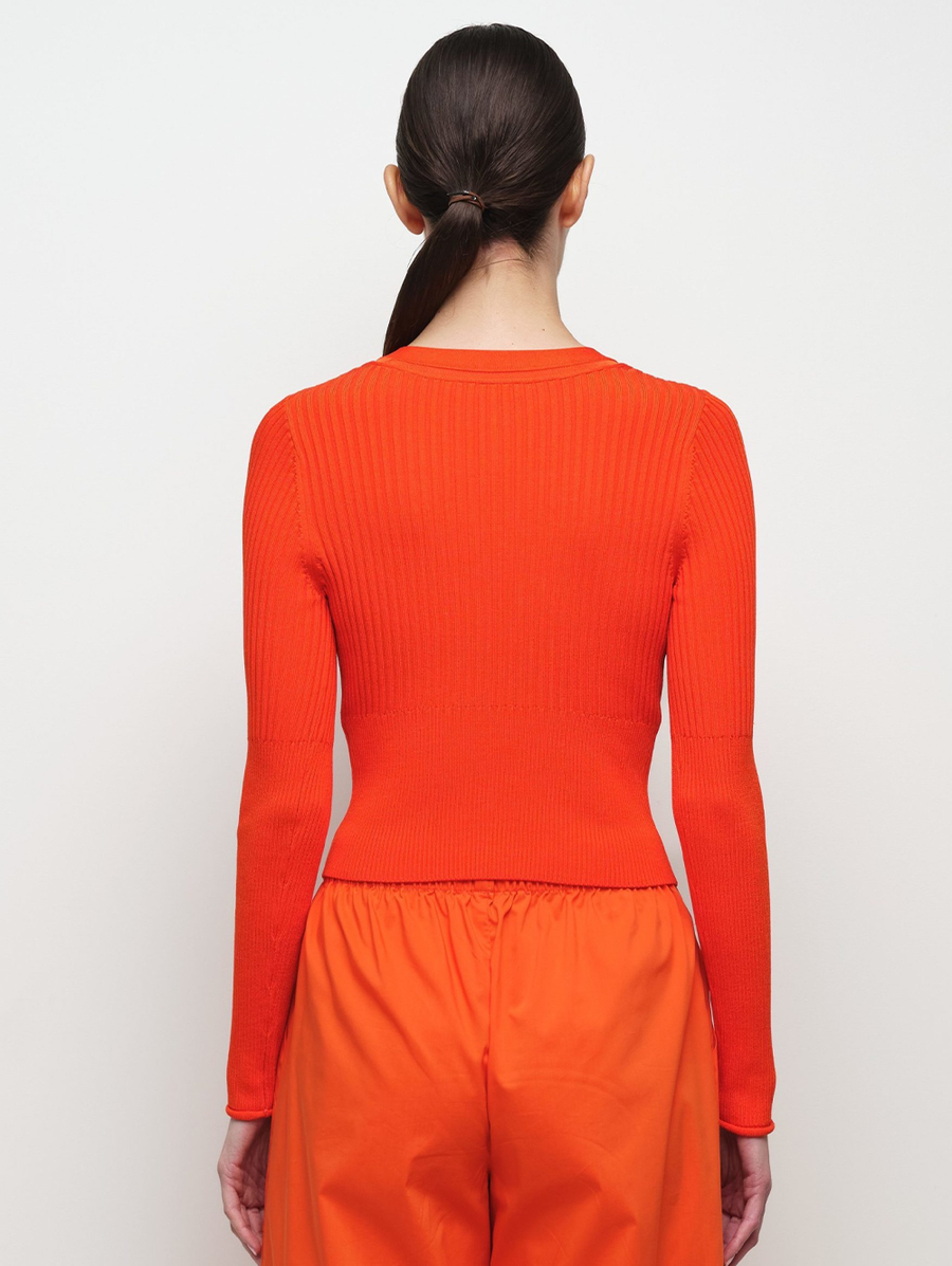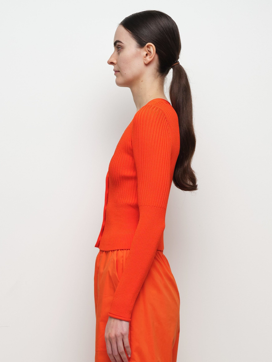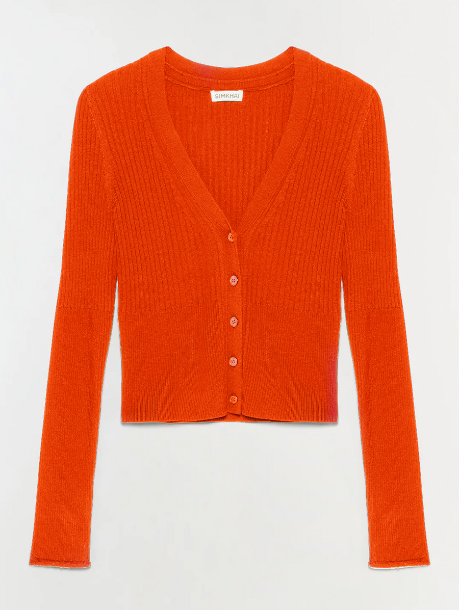 Amy Says... The Ailany Rib Knit Cardigan in Lobster. Crafted in compact rib knit, this fitted shrunken cardigan features a streamlined silhouette with button-front detailing. Shop Sweaters.