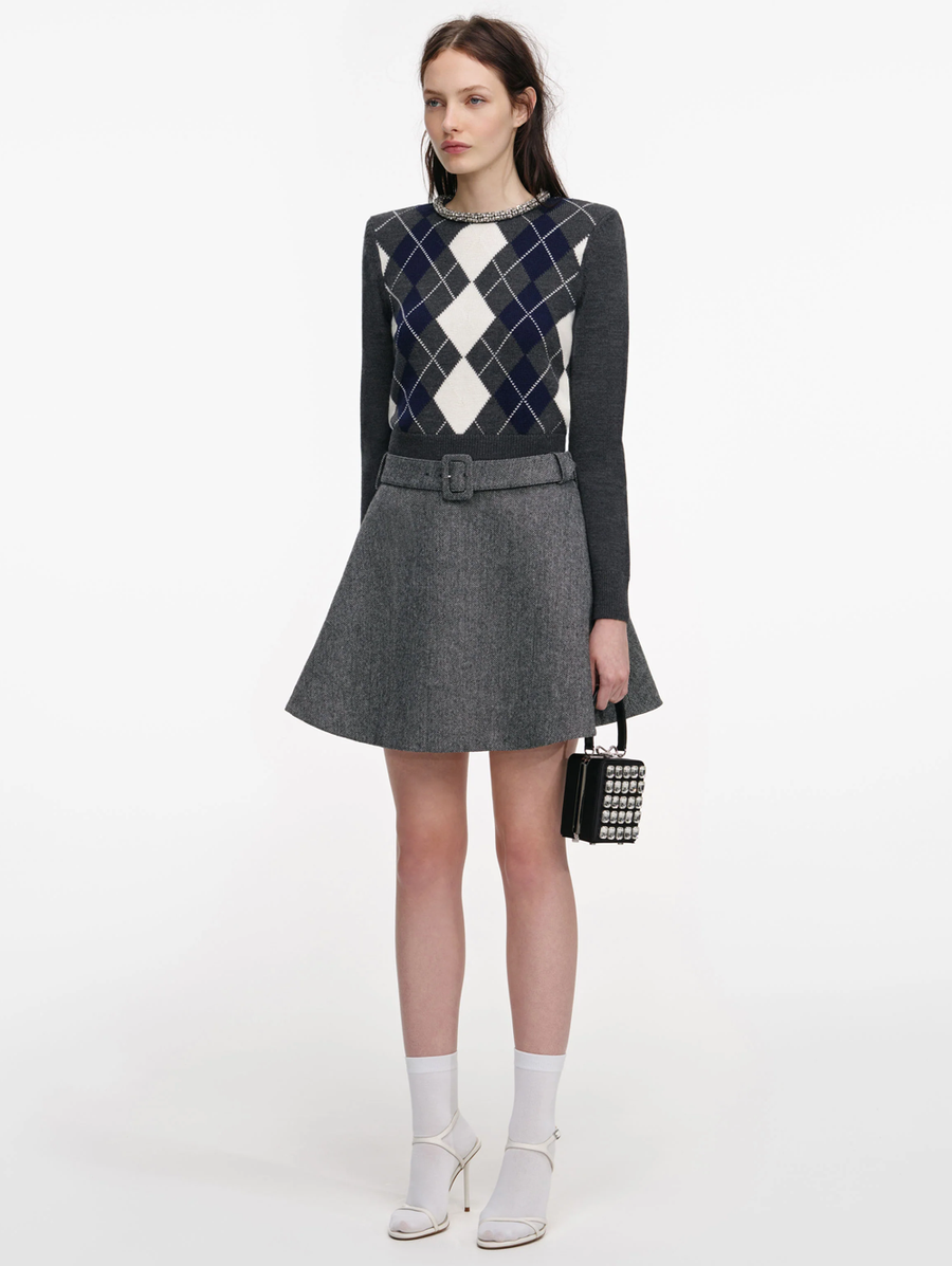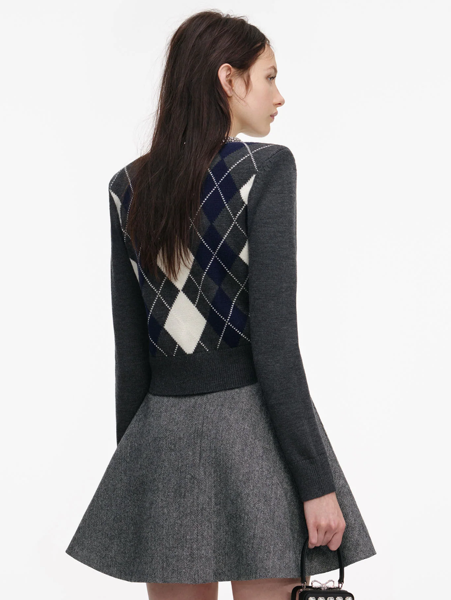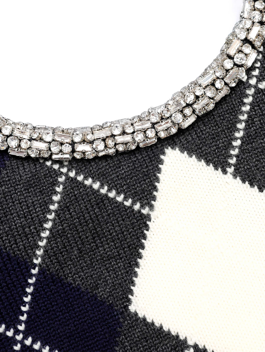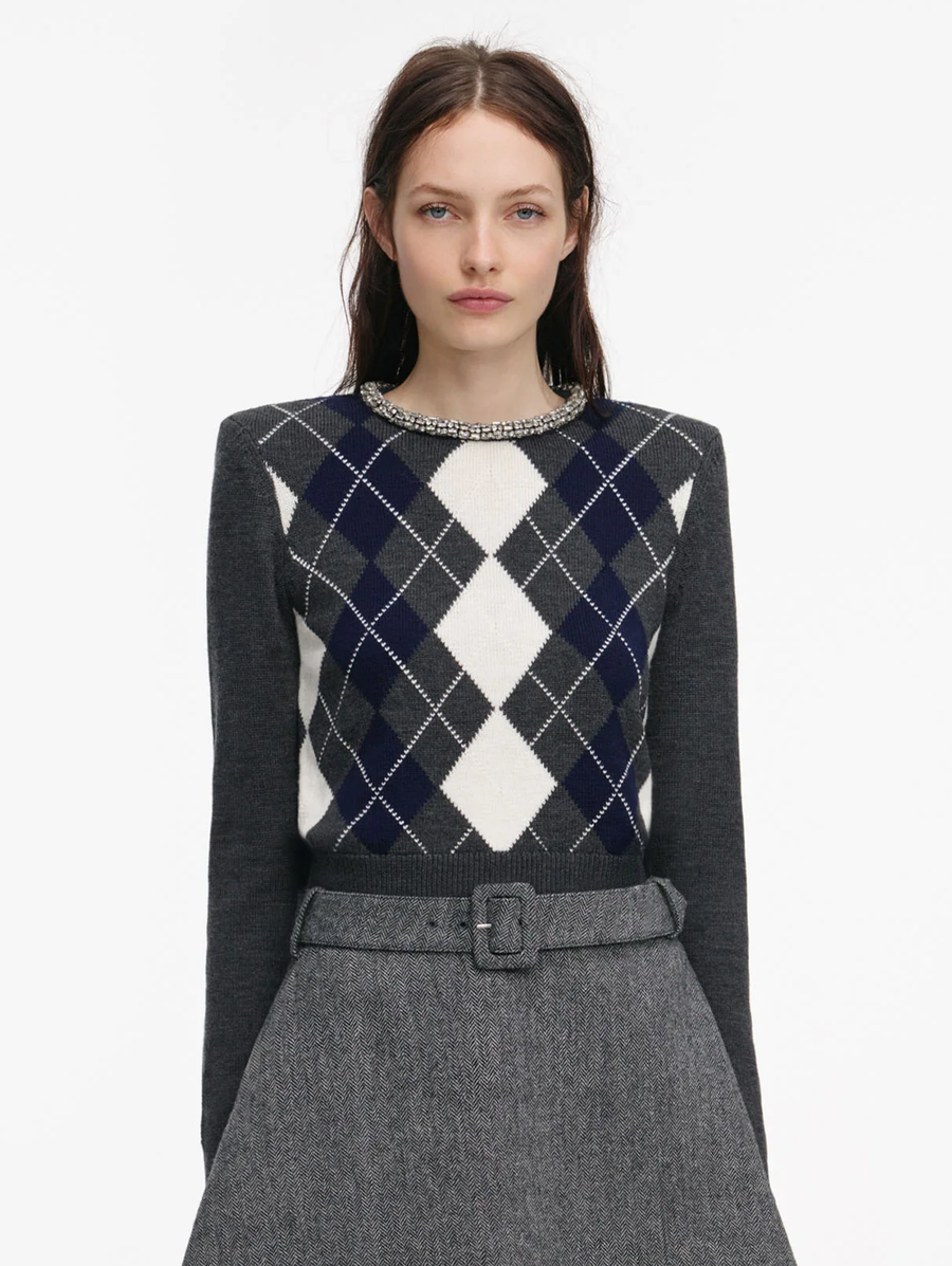 Amy Says... Classics that go beyond: Argyle knit meets the glitz and glam of sparkling crystal trims in this cosy knit jumper. Cut with a casual fit, style it with everything from baggy denim to pleated minis. Shop Sweaters.