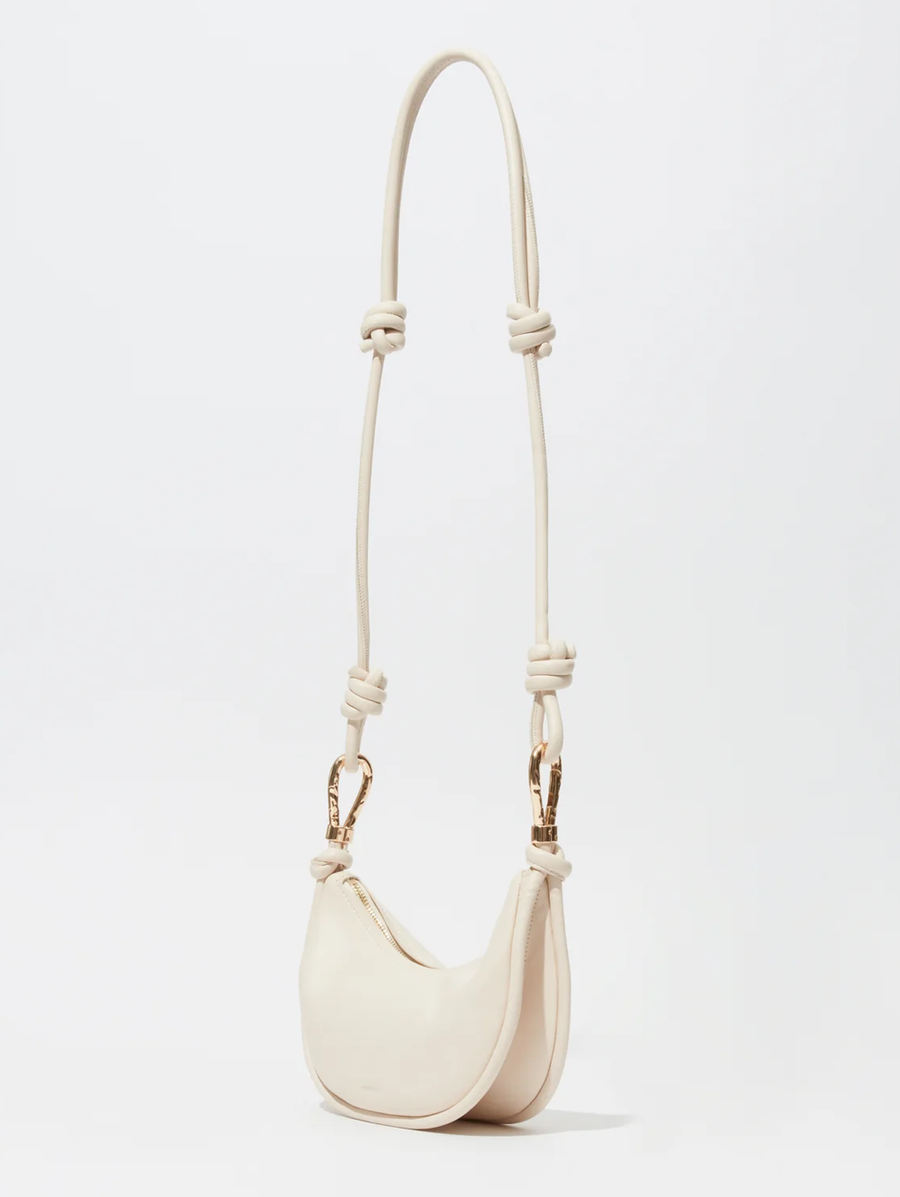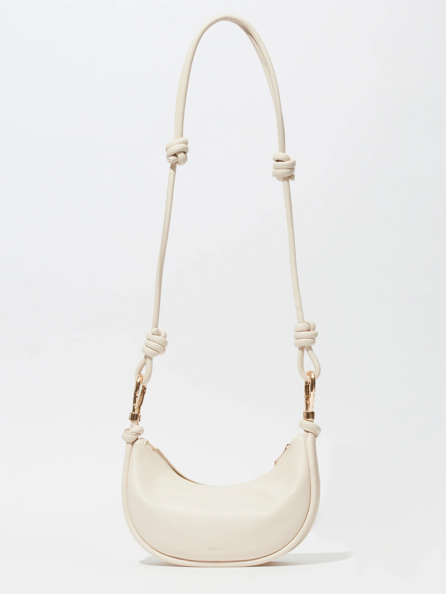 Amy Says... The Avery Leather Crossbody in Cream. Made from smooth leather, this crossbody bag is designed with a rounded base and clean piping that defines its contour. The knotted strap detaches for versatile wear, balancing soft texture with sculptural precision. A modern piece that transitions effortlessly from day to night. Shop Handbags.