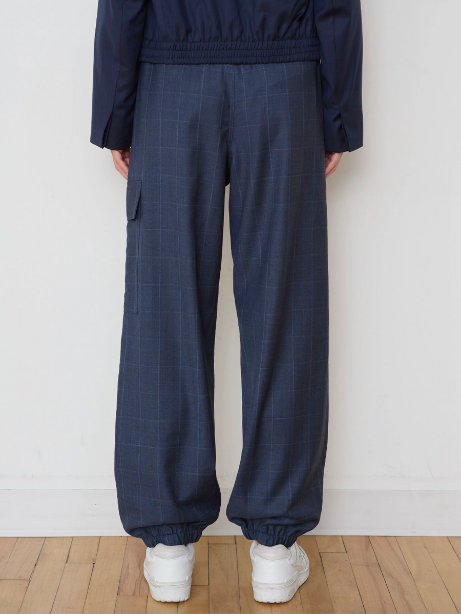 Amy Says... A sophisticated take on sporty, the Bootleg Cargo pant balances the utilitarian — a toggled waist and cuffs and single cargo pocket — with a polished finish. Crafted from upcycled Italian pale grey wool with an elastic satin waistband. Shop Pants.