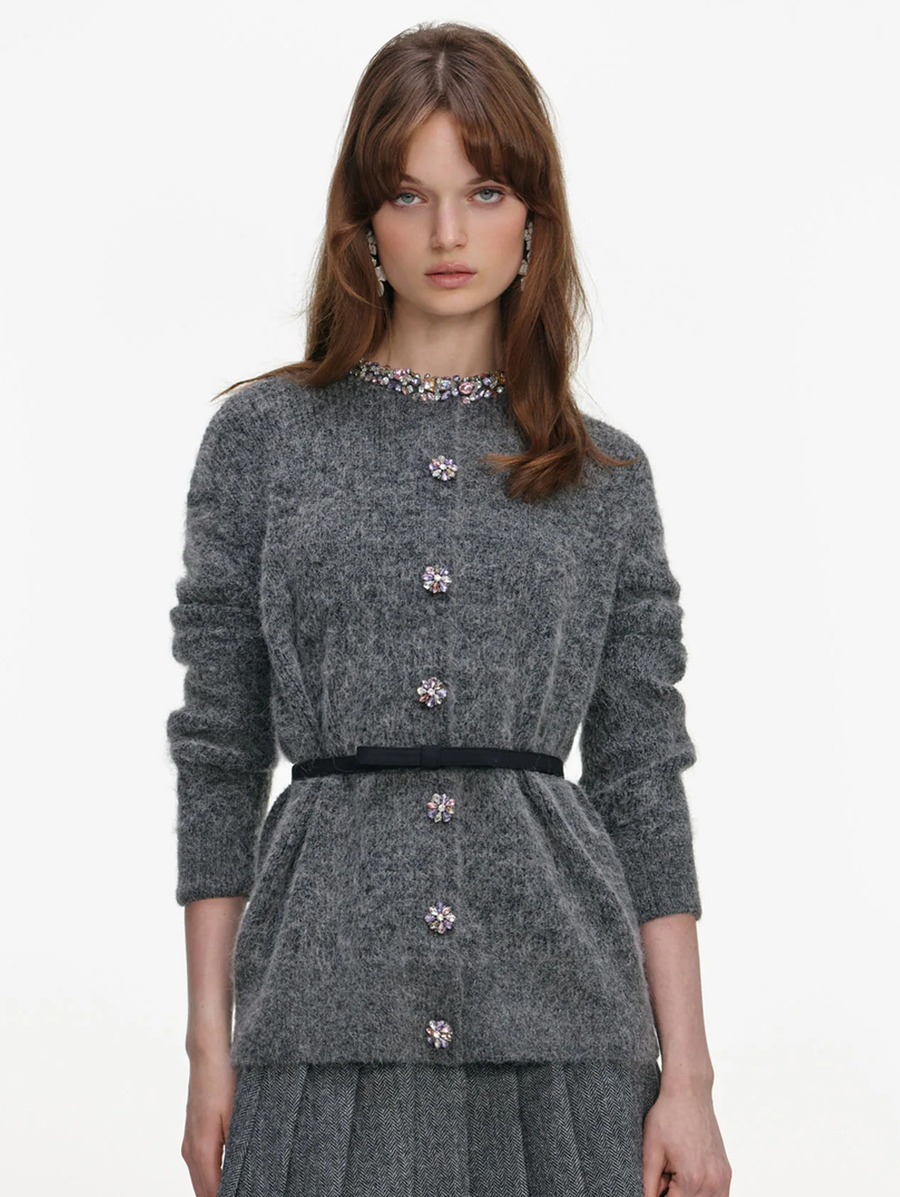 Charcoal Crystal Trim Cardigan