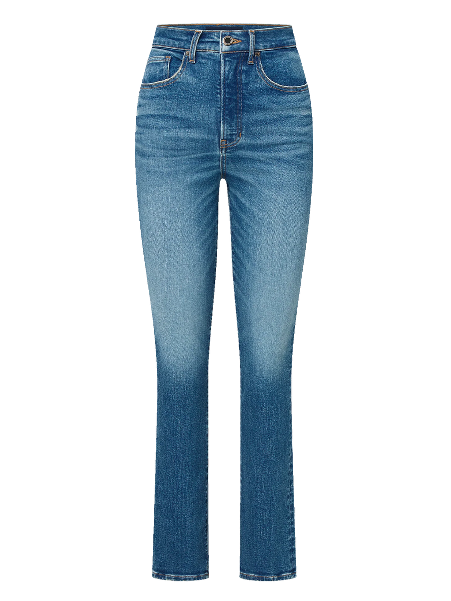 Amy Says... Meet Lydia—our high-rise, ultra-slim jean. Crafted in LA from premium stretch Italian denim with a versatile medium wash, it’s designed to hug you from waist to ankle for a flattering fit—finished with a cropped hem to showcase your shoes. Style these blue slim-leg jeans with loafers for day or dress up with strappy heels for the night. Shop Denim.